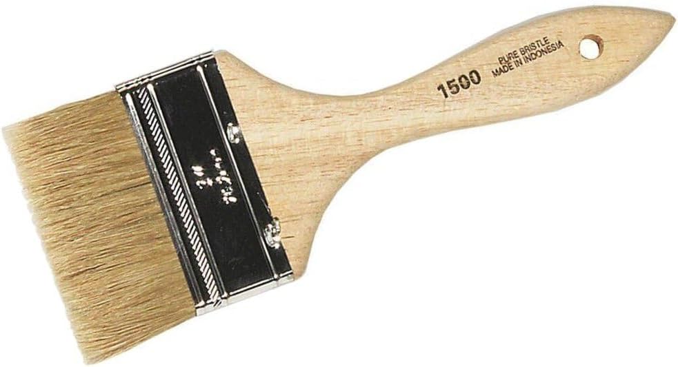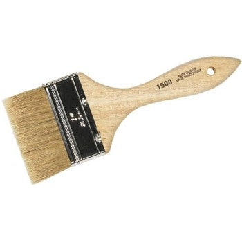 Linzer 1500-3 is a 3-inch flat chip brush designed for latex paints, chip applications, and touch-ups. It features white Chinese bristles with a natural wood handle and a steel ferrule. Nominal brush thickness is 3/8” with a 1-1/2” trim length.